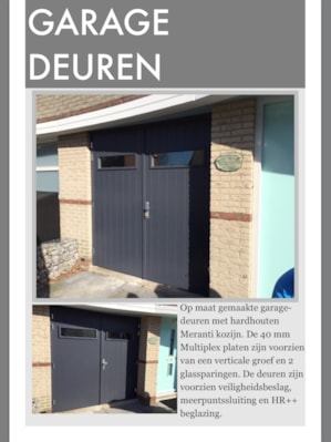 Op maat gemaakte garagedeuren met hardhouten Meranti kozijn.